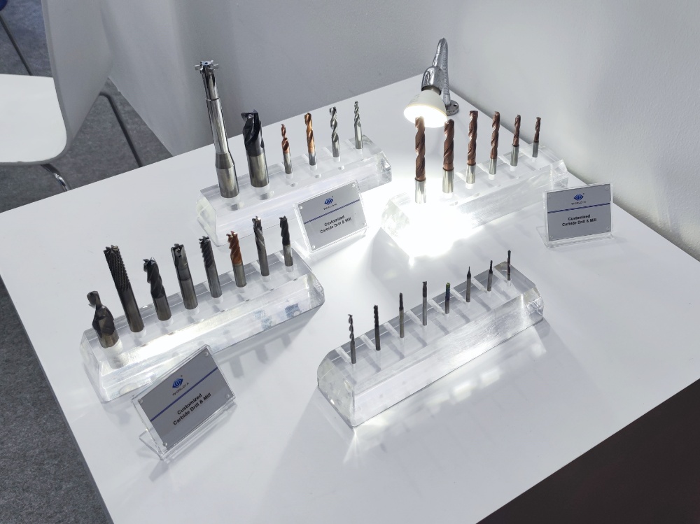 在本次展會上,我們重點展示了PCD非標刀具、PCD可轉(zhuǎn)位面銑刀、CVJ球道銑刀、PCBN槽刀、MANANOVA標準品、整體硬質(zhì)合金圓柄刀具、?MCD單晶金剛石刀具以及主要用于半導(dǎo)體,單晶硅加工的微鉆產(chǎn)品等。
