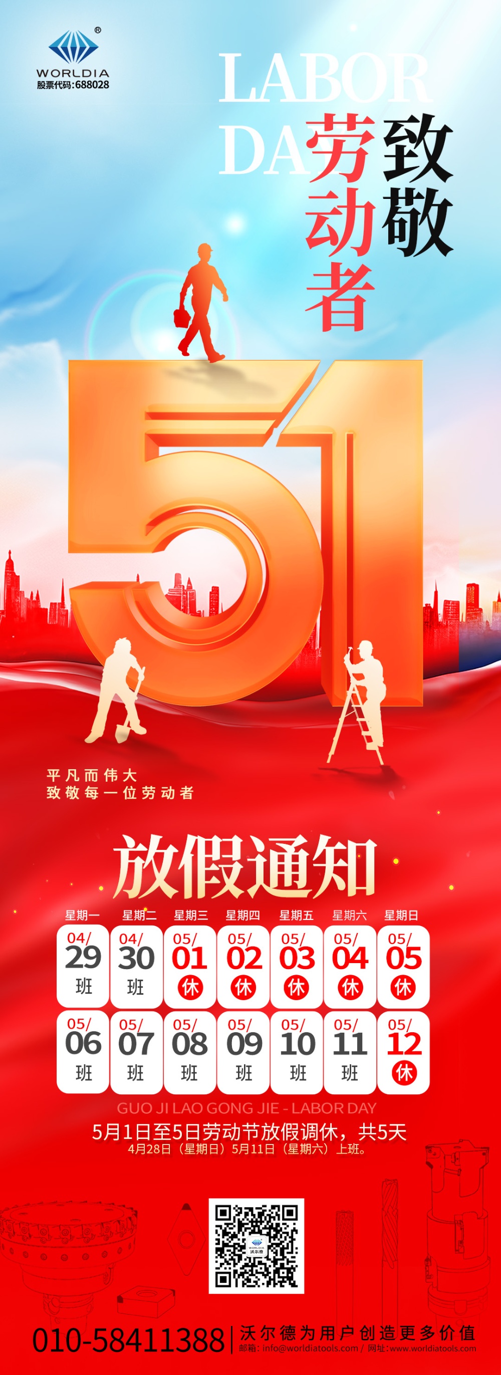 五一勞動(dòng)節(jié)是勞動(dòng)者的節(jié)日,也是全體沃爾德人的節(jié)日。讓我們在這個(gè)特殊的日子里,共同慶祝勞動(dòng)者的光榮與偉大,共同見證“誠信、價(jià)值、巔峰”的力量。我們相信,在全體員工的共同努力下,沃爾德公司一定能夠迎來更加輝煌的明天!