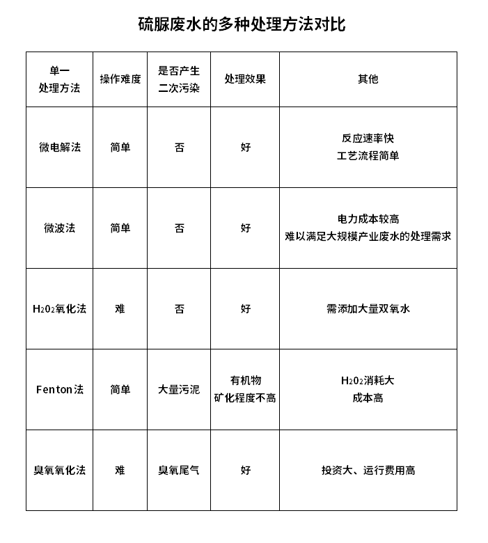 目前關(guān)于硫脲廢水的處理方法有微電解法、微波法、H?O?氧化法、Fenton法和臭氧氧化法。但都存在一些限制和問(wèn)題,如高耗能、高成本、產(chǎn)生二次污染等。