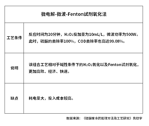 三、組合工藝法處理硫脲廢水針對(duì)硫脲廢水的現(xiàn)有組合工藝,是微電解-微波-Fenton試劑氧化法。