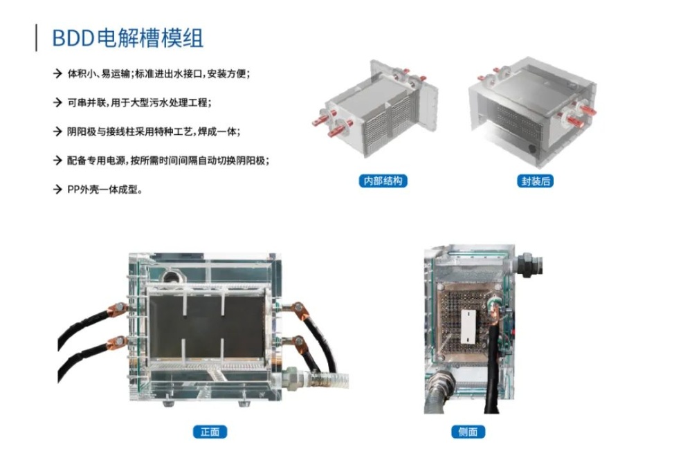 BDD電化學(xué)氧化技術(shù)可對(duì)高濃度有機(jī)廢水進(jìn)行前期預(yù)處理以降低毒性、提高可生化性,或者后段深度處理直接降解到達(dá)標(biāo)。作為廢水處理的重要工藝,可針對(duì)水體中的難降解有機(jī)物進(jìn)行氧化分解,而且能結(jié)合膜過(guò)濾、臭氧催化氧化、蒸發(fā)等工藝來(lái)實(shí)現(xiàn)廢水處理的穩(wěn)定達(dá)標(biāo)。