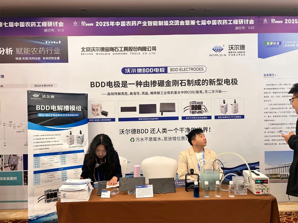 在展會現(xiàn)場,沃爾德技術(shù)人員通過現(xiàn)場演示BDD小試設(shè)備的運行效果,直觀展示了其高效的廢水處理能力。同時,技術(shù)人員還提供了專業(yè)的講解和答疑解惑,讓參會者更加深入地了解了BDD電極的技術(shù)原理和應(yīng)用前景。這一環(huán)節(jié)引得眾多參會者駐足觀看,熱切討論。