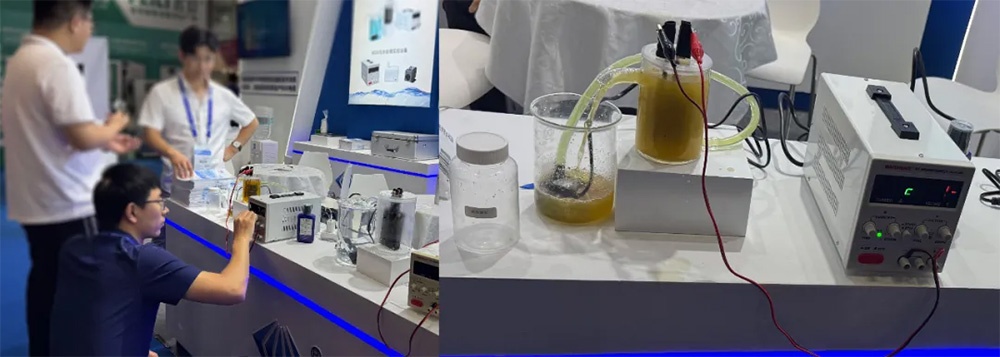 沃爾德此次展出的BDD燒杯式污水處理實(shí)驗(yàn)設(shè)備專為工業(yè)廢水前期試驗(yàn)設(shè)計(jì)。該設(shè)備通過(guò)小水量處理,可快速驗(yàn)證電化學(xué)氧化技術(shù)對(duì)有機(jī)廢水的處理效果,同時(shí)為工程化應(yīng)用積累重要數(shù)據(jù)。展會(huì)現(xiàn)場(chǎng),更有意向客戶帶著自家企業(yè)的實(shí)際水樣前來(lái)測(cè)試,希望通過(guò)現(xiàn)場(chǎng)實(shí)驗(yàn)驗(yàn)證設(shè)備效果。