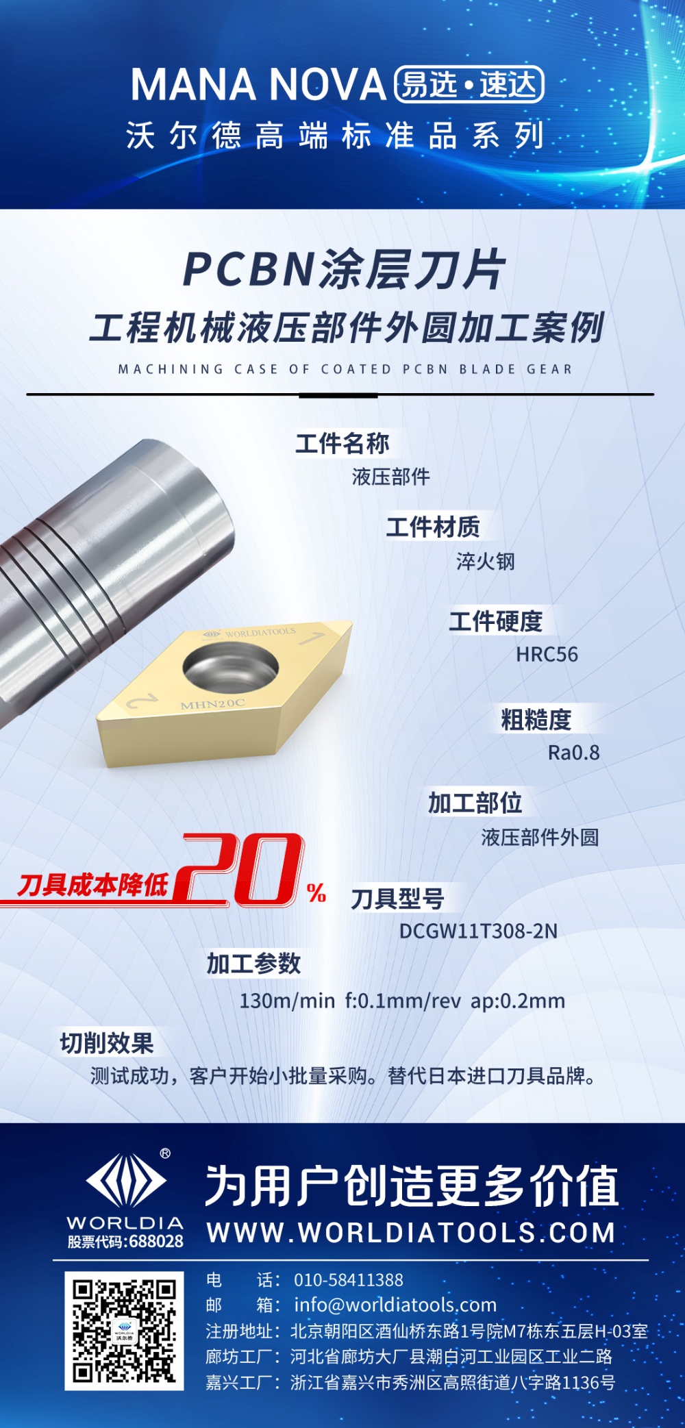 工程機械液壓部件外圓加工案例 | MANANOVA 涂層PCBN刀片 2022-05-25 10:12:37 北京沃爾德金剛石工具股份有限公司 瀏覽次數 1751 上一條沃爾德MANANOVA-斷屑型PCD刀片應用優(yōu)勢 下一條齒輪內孔連續(xù)加工案例 | MANANOVA 涂層PCBN刀片