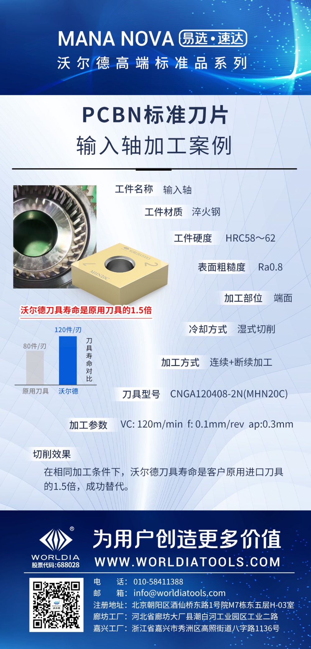 沃爾德MANANOVA PCBN標(biāo)準(zhǔn)刀片-輸入軸加工案例 2023-10-19 10:35:59 北京沃爾德金剛石工具股份有限公司 瀏覽次數(shù) 3691 上一條全新WZ-X系列PCD微鉆產(chǎn)品,為客戶帶來高效、穩(wěn)定、可靠的微孔加工效果 下一條沃爾德MANANOVA PCBN標(biāo)準(zhǔn)刀片-齒輪加工案例