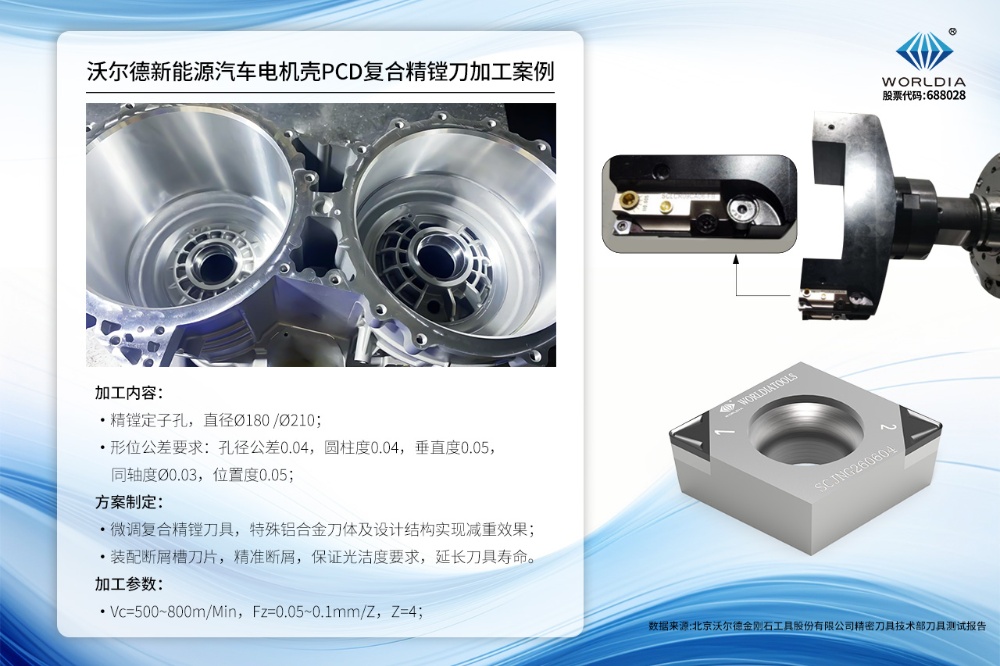 沃爾德PCD復(fù)合精鏜刀:新能源汽車電機殼定子孔加工的精密之選