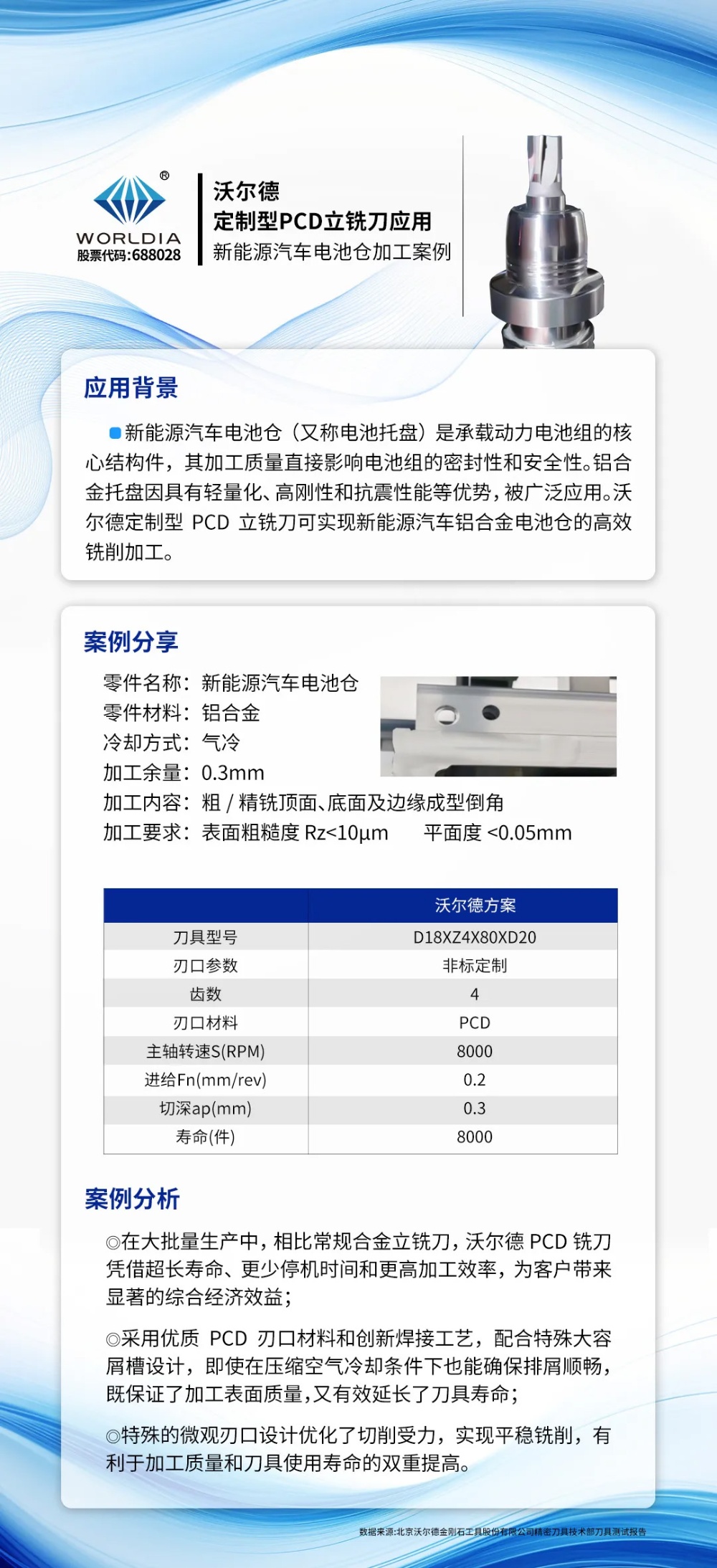 沃爾德定制型PCD立銑刀應(yīng)用案例-新能源汽車電池倉加工 2025-05-28 09:23:19 北京沃爾德金剛石工具股份有限公司 瀏覽次數(shù) 1610 上一條沃爾德PCBN硬車、硬銑加工解決方案:攻克外球籠加工難題 下一條汽車空調(diào)渦旋盤加工優(yōu)選:沃爾德PCD螺旋刃立銑刀